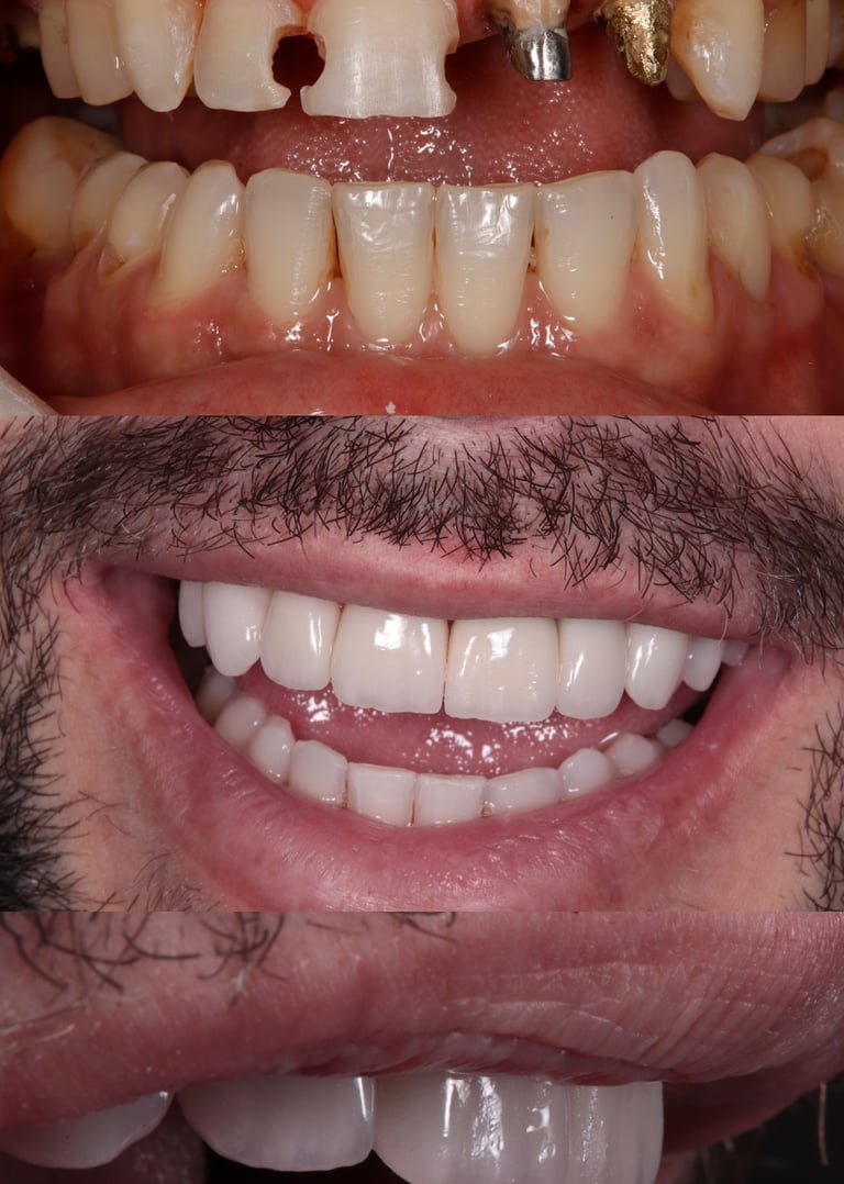 Implantes para substituir dentes unitários perdidos e prótese do tipo protocolo para reabilitar todos os dentes, tudo isso planejado digitalmente com segurança e rapidez.