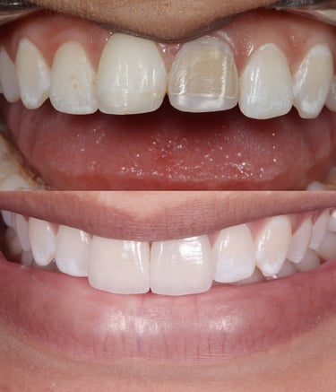 Realizamos clareamentos supervisionados (caseiros), clareamento de consultório à laser seguros e eficazes para iluminar seu sorriso e aumentar sua confiança.